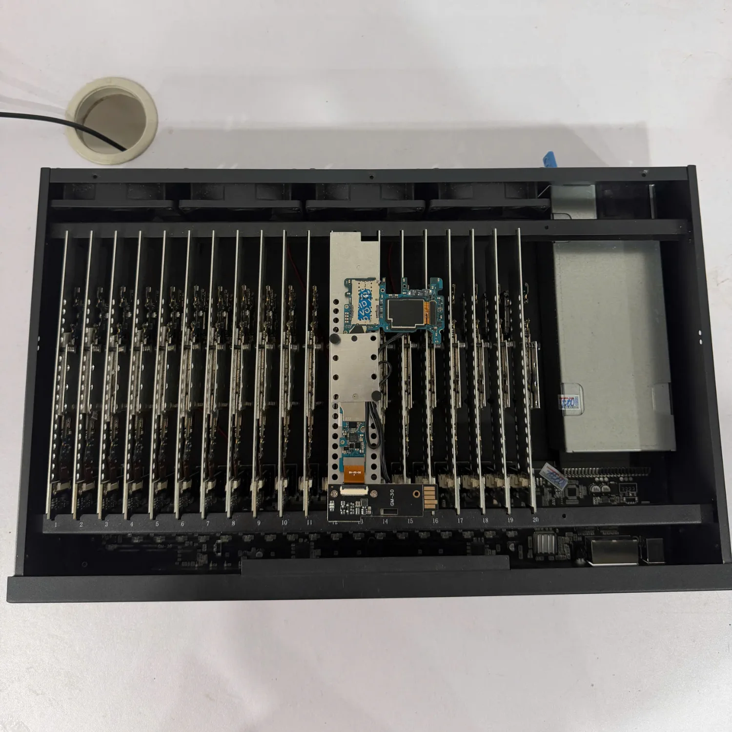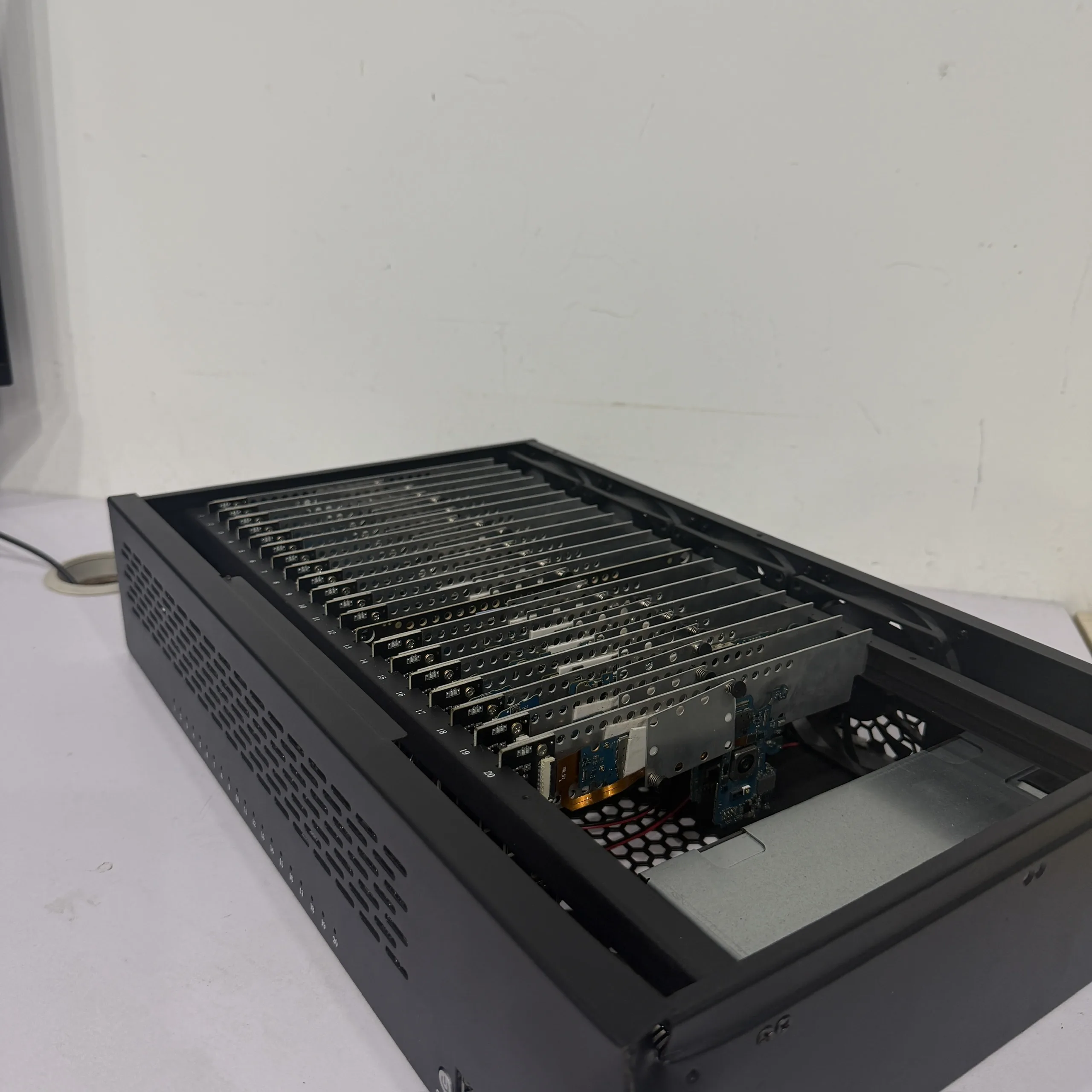 Box Phone Farm Note8 là hệ thống chuyên dụng giúp kết nối và quản lý nhiều điện thoại Samsung Note8 cùng lúc thông qua máy tính. Các thiết bị được bố trí trong khung box gọn gàng, giúp tối ưu không gian làm việc và thuận tiện trong việc vận hành cũng như theo dõi trạng thái của từng điện thoại.